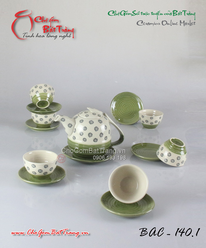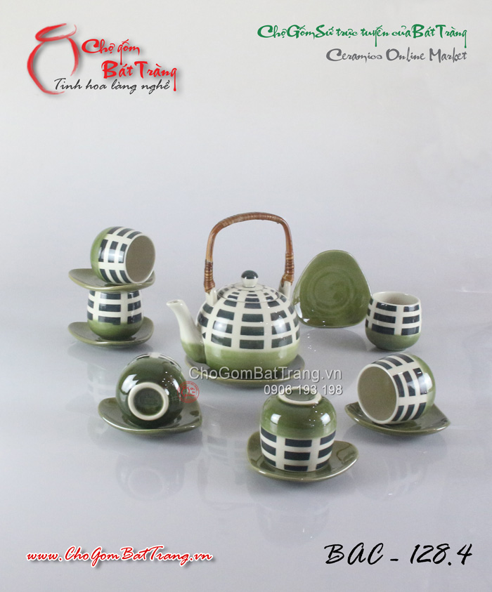 Bộ ấm chén men trắng tống số 1 kẻ xanh