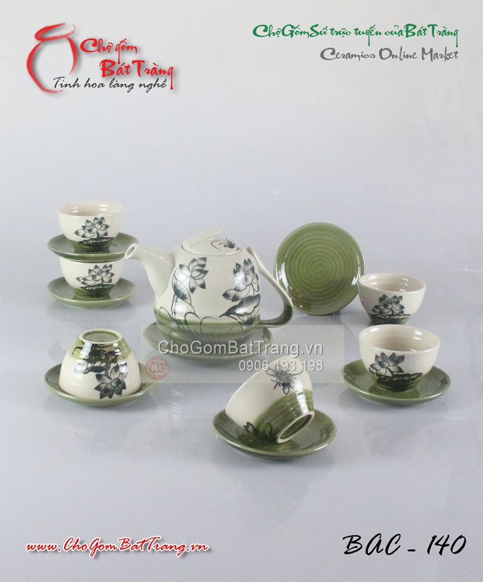 Bộ ấm chén men trắng đầm hoa sen
