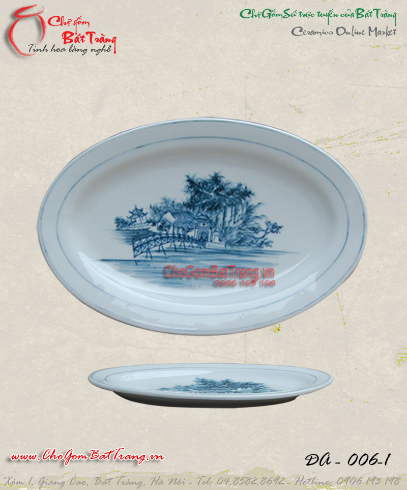 Đĩa sứ bầu dục vẽ phong cảnh Hà Nội số 2